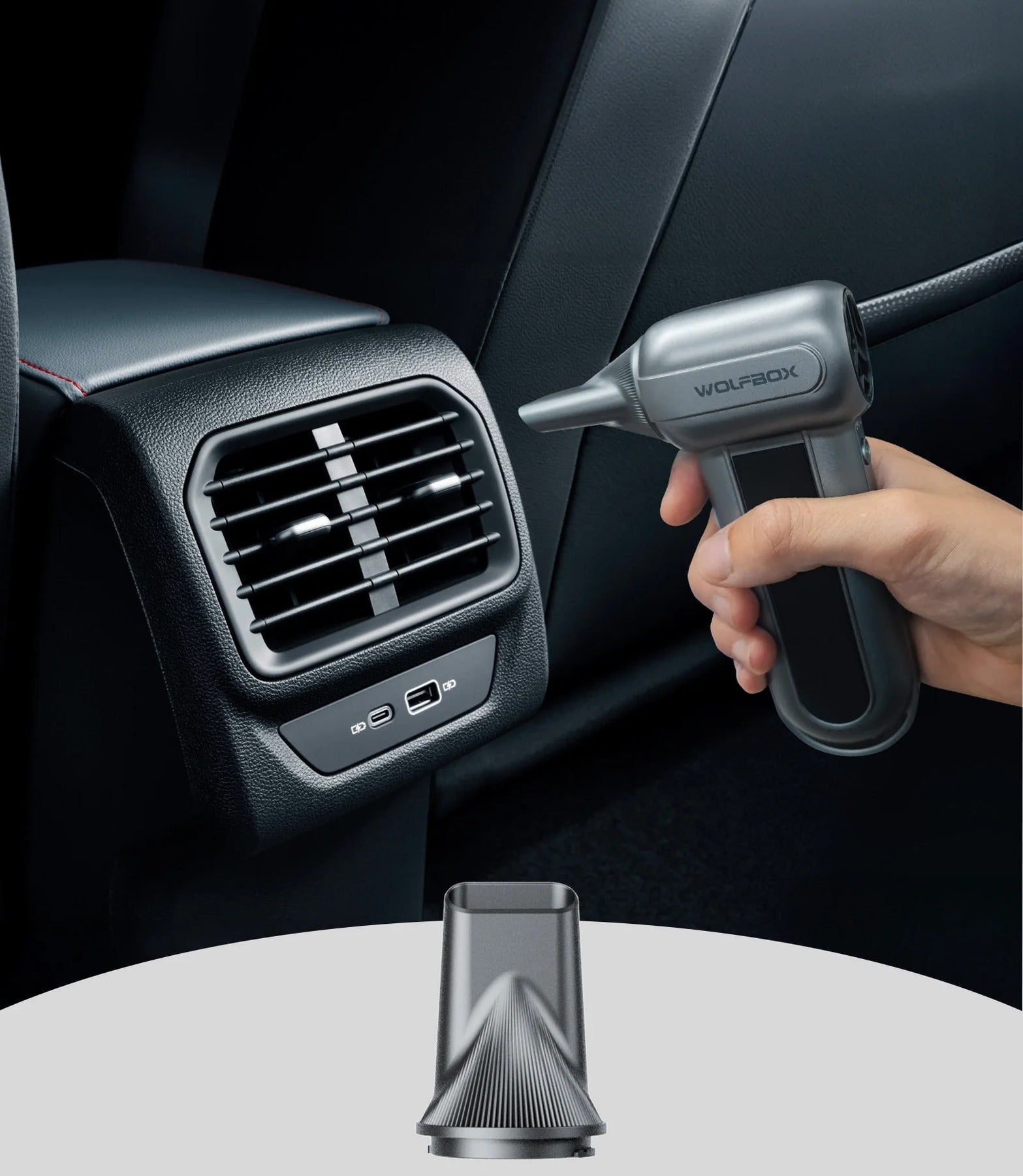 מפוח האוויר החשמלי WOLFBOX MF100  מספק עוצמת ניקוי גבוהה במיוחד הודות למנוע חזק במהירות של עד 150,000 סל״ד (RPM).